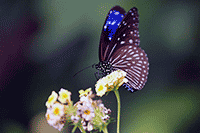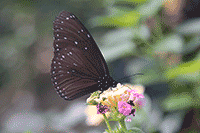 2月は茨城県袋田の滝と古徳沼の白鳥撮影を予定していました。ところが関東各地に雪害をもたらした大雪で中止となり氷結の滝撮影の絶好の機会を逸してしまいました。代わりに出掛けたのが多摩動物公園です。園内も除雪が十分でなくシャトルバスも運休中で、昆虫生態園で蝶の撮影を楽しみました。ここは常夏の環境が作ってあり寒い外から園内に入るとレンズが曇ってしまい20分は待たないと撮影出来ませんでした。漸く撮影を始めると、高温と湿度で目に汗が入り、汗を拭きながら動き回る蝶を追っかけるのは結構大変でした。途中でバックから交換レンズを出すとやはり曇ってしまい乾く迄待つことになりました。チョウの種類は図鑑での調べで正確でないかもしれません。何しろ生息地で少しづつ色味などの変化があり判別が難しい様です。